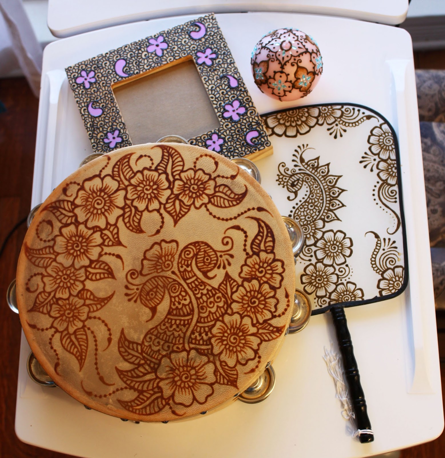Henna is a traditional art form that has been practiced in India, the Middle East (especially Pakistan), and parts of Africa (Libya, Mauritania, Morocco, Somalia, Sudan) for hundreds of years. The henna plant is believed to bring love and good fortune, and to protect against evil spirits. Henna Art is put on hands mostly, but is now catching popularity in many other ways. Beautiful patterns and designs include traditional, geometric, Arabic, Moroccan, floral and more. With many nontraditional forms of Henna styles becoming cool with talented artists especially in Pakistan and India. These include swirls, paisleys, geometric shapes, Arabic/ Muslim architectural designs and motifs with western symbols, signs and characters as well. However, creative Henna art is not limited to the body. Some artist has used Henna art making talent into crafting handmade projects. Here some example of henna craft ,check this out !